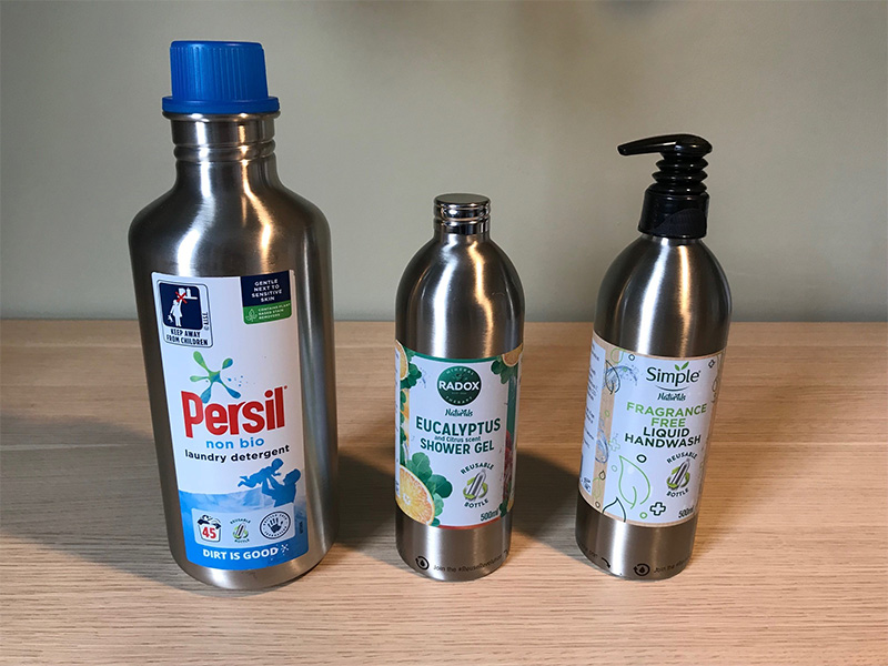 The 500ml & 1215ml bottles are the same stainless steel ones as used in Asda. Actually, the bottles are provided by a company called RE.  I’m informed that you can return these bottles across both platforms for refunds either direct to the store or through the Loop app. This is a nice example of collaboration and simplification for the consumer. Standardisation in the refill market is another interesting discussion but one for another blog post!