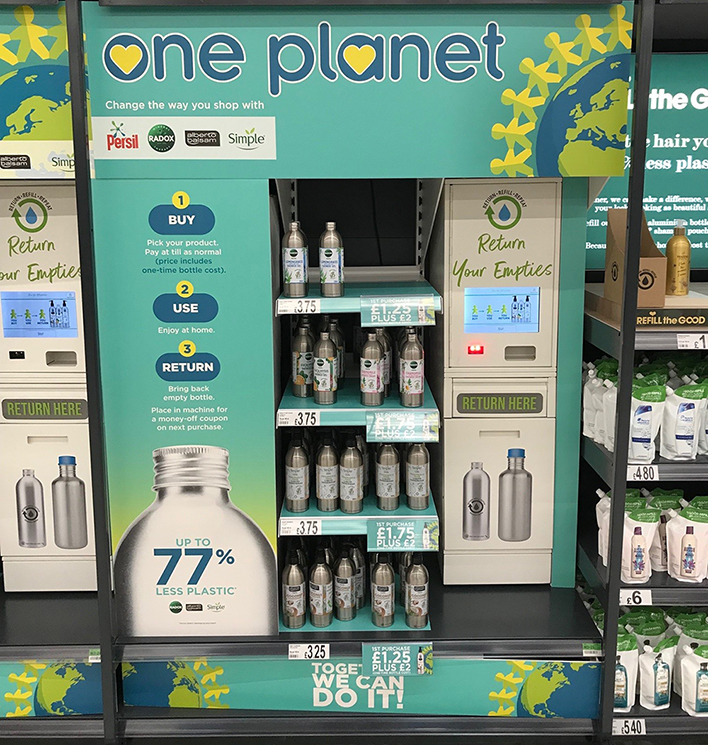 Much like the first Asda setup Loop have chosen to provide filled packaging where the consumer continues with their traditional purchasing behaviour.